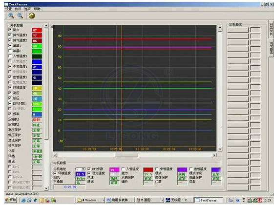 中央空調機由于工程復雜,設備分散,有的已經裝修在開花板上測試程序,一但出現了故障,工程量相當大,為了能夠快速準確地測出故障是由主機機組還是室內機的故障的,每個生產廠家根據生產的和維修的需要而開發了中央空調測試程序??蓽y試壓縮機的運轉頻率,傳感器的各種數據,電子膨脹閥的工作步數等幾十種中央空調的工作數據和狀態,軟件可實現對內機的控制,,可以對1-64臺內機的狀態進行設定。是高校提供了好的研究的學習設備。