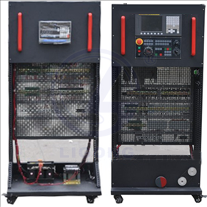 2.機床實訓柜采用鐵質亞光密紋噴塑結構,正面裝有數控系統和操作面板,背面為機床電氣柜,柜內器件布局與實際機床廠的模式*。電氣柜內的電氣安裝板為多功能網孔板,上面裝有伺服驅動器、交流接觸器、繼電器、保險絲座、斷路器、開關電源、接線端子排和走線槽等;電氣柜底部還設有變壓器和接地端子等。