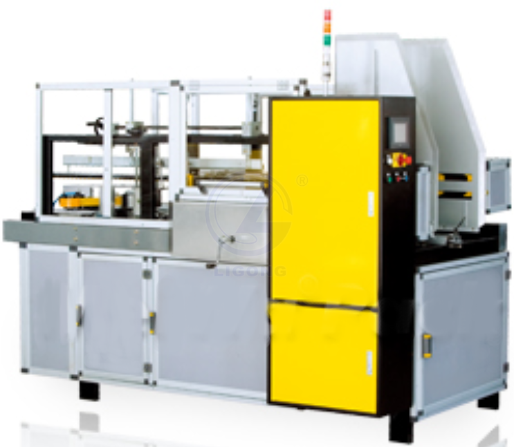 紙箱成型機、開箱機是指自動完成開箱、成形、下底折葉折曲。并現時完成下部分膠帶粘貼,將疊成紙板的箱板打開,箱子底部按一定程序折合,并用膠帶密封后輸 送給裝箱機的專用設備。自動紙箱成型機、自動開箱機是大批量紙箱自動開箱、自動折合下蓋、自動密封下底膠帶的流水線設備,機器全部采用PLC+顯示屏控制,大大方便操作,是自動化規模生產必不可少的設備。