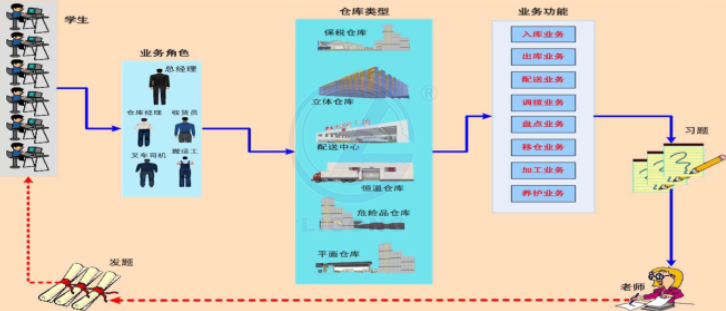 所有的實訓場景要求以現實物流企業的管理流程為核心進行,各個子系統的實訓流程參考眾多國內外業務規范、在行業內、的領頭企業的業務模式進行設計。同時,配套提供詳細的實訓指導書、企業原始表單、報表、企業實際運作VCD、組織結構圖等眾多材料,以確保深入理解現實企業的真實流程;