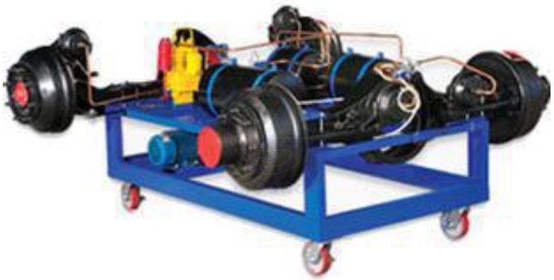臺架結構:試驗臺由機架、氣壓制動系統總成兩部分組成;制動系統零件置于機架之上,結構完整、與實車相同。