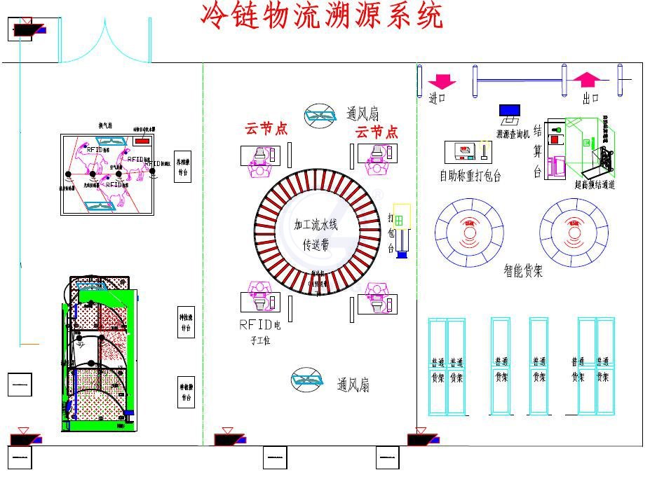 冷鏈物流溯源系統(tǒng)是針對近年來頻發(fā)的冷鏈產(chǎn)業(yè)中的安全危機(jī)設(shè)計(jì)的覆蓋物流“產(chǎn)、加、運(yùn)、銷”各個(gè)環(huán)節(jié)的追溯系統(tǒng)。它綜合運(yùn)用傳感器采集、RFID射頻識(shí)別、設(shè)備控制、無線傳感器網(wǎng)絡(luò)、嵌入式系統(tǒng)、網(wǎng)絡(luò)通信技術(shù)等物聯(lián)網(wǎng)技術(shù)以及多學(xué)科技術(shù)的交叉融合,依托部署在冷鏈物流溯源系統(tǒng)中的各種傳感器節(jié)點(diǎn)、射頻識(shí)別裝置、控制節(jié)點(diǎn)、智能網(wǎng)關(guān)、服務(wù)器以及客戶端等,實(shí)現(xiàn)冷鏈物流各個(gè)環(huán)節(jié)的智能感知與控制,加工環(huán)節(jié)的標(biāo)簽自動(dòng)識(shí)別讀寫綁定分包,運(yùn)輸環(huán)節(jié)的車輛溫度嚴(yán)格控制查詢,超市銷售環(huán)節(jié)的智能盤點(diǎn)、自助結(jié)算和食品溯源查詢等功能,為提供安全可靠的物流鏈路保駕護(hù)航。因此將物聯(lián)網(wǎng)技術(shù)應(yīng)用于冷鏈物流的原材料采購、產(chǎn)品儲(chǔ)存、運(yùn)輸、銷售等各個(gè)環(huán)節(jié),能夠?qū)φ麄€(gè)過程實(shí)施智能化監(jiān)控顯得尤為重要。