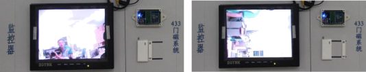 監控器上正常監控時的畫面 門磁觸發時的監控畫面