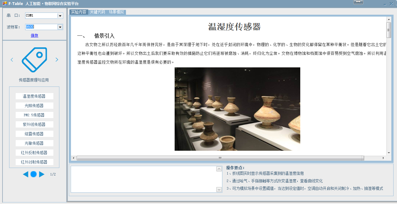在C#軟件上有每一個教學(xué)實(shí)驗(yàn)資源,包含實(shí)驗(yàn)?zāi)康模瑢?shí)驗(yàn)原理,實(shí)驗(yàn)內(nèi)容,實(shí)驗(yàn)步驟,實(shí)驗(yàn)過程,實(shí)驗(yàn)現(xiàn)象以及對應(yīng)場景應(yīng)用,能夠讓學(xué)生不僅學(xué)習(xí)傳感器概念,原理,開發(fā),還能學(xué)以致用。