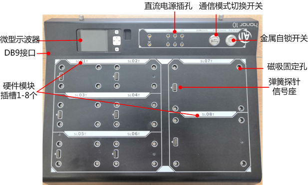 通用基礎(chǔ)平臺由平臺基座與垂直網(wǎng)板組成,符合人體工學(xué)設(shè)計(jì)。基座開模設(shè)計(jì),采用ABS材料,表面光滑,有質(zhì)感,有對應(yīng)絲印圖,美觀,大氣;基座具有DB9通信接口,3.3V/5V/12V電源插孔,通信選擇開關(guān)、總電源自鎖開關(guān);內(nèi)嵌微型示波器,可完成電路供電測試及工作過程關(guān)鍵點(diǎn)測試,能夠在電路原理學(xué)習(xí)基礎(chǔ)上完成實(shí)踐中的驗(yàn)證測試,達(dá)到理實(shí)一體效果;具有8個SLOT插槽,磁吸固定孔,彈簧頂針管腳,可與硬件模塊磁性吸合,頂針連接,完成供電、RS485、RS232等標(biāo)準(zhǔn)總線通信。硬件模塊任意組合,支持各種場景應(yīng)用,每個模塊都有通信地址和硬件電路測試點(diǎn),讓學(xué)生不僅懂得硬件電路原理,還可使用示波器測試硬件電路工作的瞬態(tài)過程。垂直網(wǎng)板是金屬網(wǎng)孔板,能磁吸或螺絲固定商用設(shè)備,用于用戶實(shí)驗(yàn)拓展。
