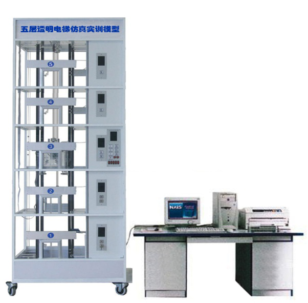 電梯:整體為不銹鋼框架,內含井道、轎箱、廳門、轎門、內呼按鈕 1 套、外呼按鈕5 套、樓層顯示、電氣系統等組成,具有真實電梯的基本結構組成。