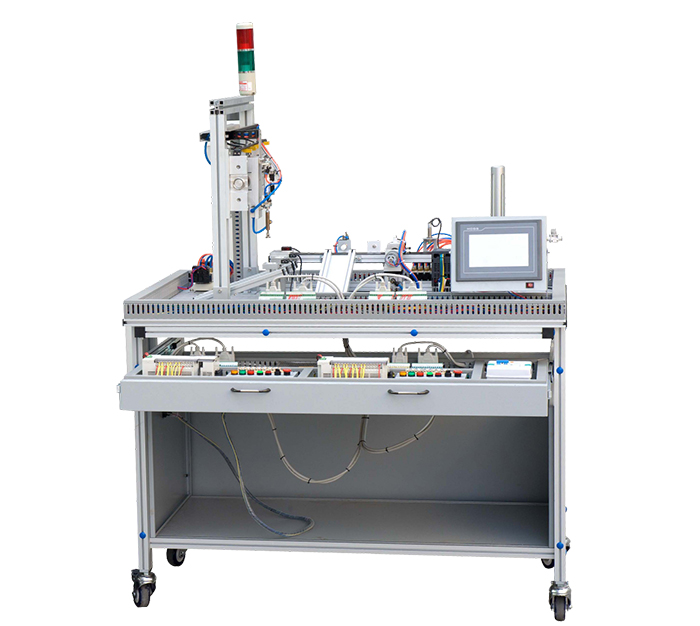 LGY-CX07型可編程序控制系統(tǒng)設計師綜合實訓考核設備(四級)整機采用的是模塊化開放式和拆裝式機構,它是由多功能工作站及控制系統(tǒng)組成。該系統(tǒng)包含了機電一體化專業(yè)學習中所涉及的如機電控制技術、氣動控制技術、生產(chǎn)過程控制技術、可編程控制技術、自動檢測技術、變頻調(diào)速技術、網(wǎng)絡通信技術、人機界面等多項技術,是一套能用于可編程序控制系統(tǒng)設計師(四級)職業(yè)技能的訓練、培訓及考核鑒定工作。