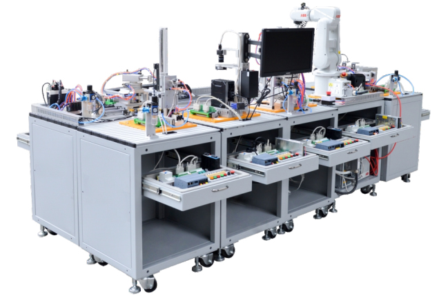 智能運(yùn)動(dòng)控制實(shí)訓(xùn)教學(xué)考核裝備最大特點(diǎn)是它的綜合性和系統(tǒng)性,在這里,機(jī)械技術(shù)、氣動(dòng)與液壓技術(shù)、圖像檢測(cè)與處理技術(shù)、工業(yè)機(jī)器人技術(shù)、電工電子技術(shù)、傳感測(cè)試技術(shù)、接口技術(shù)、信息變換技術(shù)、網(wǎng)絡(luò)通信技術(shù)等多種技術(shù)有機(jī)地結(jié)合,并綜合應(yīng)用到生產(chǎn)設(shè)備中。智能運(yùn)動(dòng)控制還可以配備MES管理系統(tǒng),MES管理系統(tǒng)是智能制造的核心技術(shù)和關(guān)鍵環(huán)節(jié)之一。而系統(tǒng)性指的是,生產(chǎn)線的傳感檢測(cè)、傳輸與處理、控制、執(zhí)行與驅(qū)動(dòng)等機(jī)構(gòu)在微處理單元的控制下協(xié)調(diào)有序地工作,有機(jī)地融合在一起。