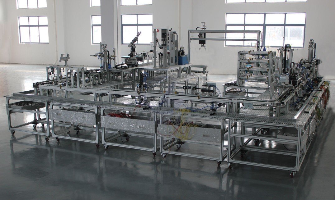LGPS-01型 拆裝式柔性機電一體化生產線組裝與調試實訓系統模擬實際工業生產制造系統過程,根據生產加工的不同階段,主要由教師總控站、下料站、模擬涂烘干站、加蓋站、頂銷站、檢測站、成廢品分揀站、提升與倉儲站組成。為完成系統的工作,拆裝式柔性機電一體化生產線組裝與調試實訓系統還配置了直線及旋轉輸送單元、園帶轉角單元、廢品輸送單元、鏈條傳送單元等輔助單元。由現場工業總線PROFIBUS-DP進行數據通訊,每一個站可單獨操作亦可練級工作。涵蓋了機、電、光、氣一體化專業中所涉及人機界面、機械結構與系統安裝調試、故障檢測及處理、CNC技術培訓、計算機技術及系統工程,既可以滿足機械、電子電路、通信,自動控制的培訓要求,又可滿足PLC、計算機、信號檢測、傳感器的實訓要求;它的推出應用在教育技術方面涵蓋了現代信息網絡技術全新的教育體系。