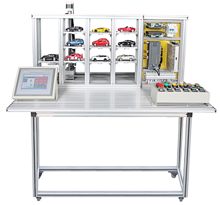 本立體倉庫實訓系統可以完成車輛的手動和自動迫車、車位信息狀態顯示。它主要包括以下幾個部分:鋁型材臺面、觸摸屏、倉庫本體、車盤、電氣板、氣動二聯件、按鈕盒和二維運動機構等。