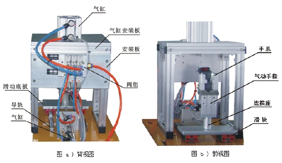 選用該裝置配置的單出桿氣缸、單出雙桿氣缸、旋轉氣缸等氣動執行元件和單控電磁換向閥、雙控電磁換向閥和磁性開關等氣動控制元件,可完成下列氣動技術的工作任務: