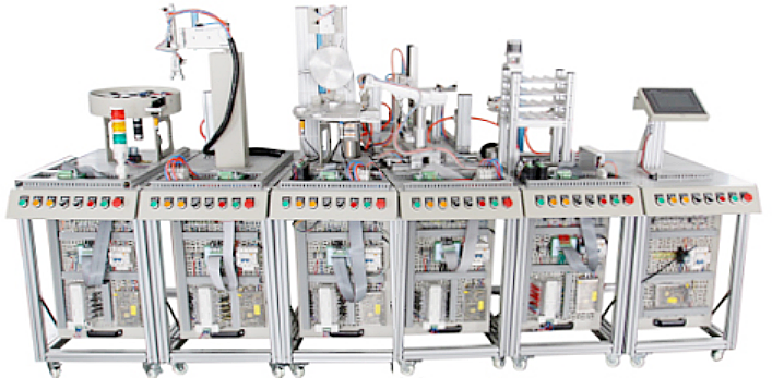 LG-MPS01型 模塊式柔性自動化生產線實訓系統是一種最為典型的機電一體化、自動化類產品,它是為職業院校、教育培訓機構等而研制的,它適合機械制造及其自動化、機電一體化、電氣工程及自動化、控制工程、測控技術、計算機控制、自動化控制等相關專業的教學和培訓。 模塊式柔性自動化生產線實訓系統接近工業生產制造現場基礎上雙針對實訓教學進行了專門設計,強化了各種控制和工程實踐能力。模塊式柔性自動化生產線實訓系統包含了機電一體化專業中的氣動、電機驅動與控制、PLC、變頻器、觸摸屏、傳感器等多種控制技術,適合相關專業學生進行工程實踐、課程設計及初上崗位的工程技術人員進行培訓。