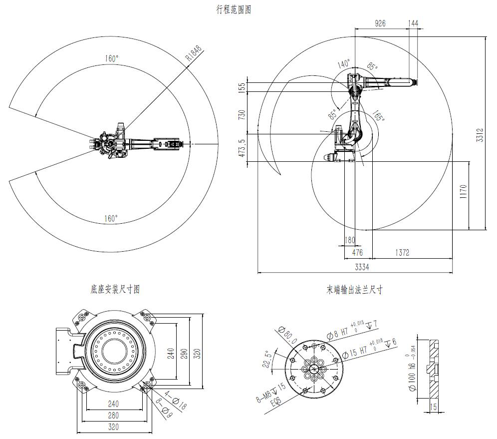5.超高精度: 除了精密的設計外,采用了進口高精密減速機,末端重復定位精度高達±0.06MM;