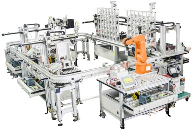 主要由生產線中元器件組成,如傳感器、氣動元件、電機、工業機器人、儀器儀表、按鈕、指示燈等之間形成邏輯,執行相關的動作和反饋當前狀態。