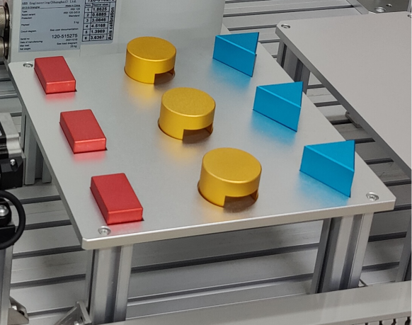 1、分揀搬運碼垛: 配備圓形、三角形、方形等物料模板;機器人可精準完成各種形狀物料分揀搬運;可擴充配置視覺組件,選配視覺條件下可完成全自動分揀(含顏色、位置、坐標、角度等識別);