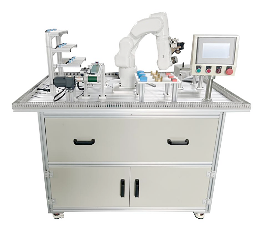 1、整個平臺為立式結構,主要框架和工作面采用工業鋁型材搭建,電器柜可以安裝工控機、IO口擴展板、電磁閥安裝位置、變頻器安裝位置、PLC安裝位置,電氣接線部分為抽屜式結構,便于接線,預留擴展區域,便于設備的擴展。工作平臺為可以靈活安裝各功能模塊的導槽式或矩陣螺絲孔式。尺寸:≥1400mm×1000mm×900mm;材料:鋁合金+鋼板;平臺面板為多用途可擴展設 計方式,擴展靈活;采用氣動夾具:最大負載能力:≥3kg;最大抓取范圍:≥15cm×15cm;最高抓取精度:≥1mm;帶安裝機架。
