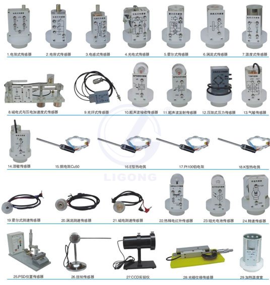LGJZ-141E型 傳感器與檢測技術實驗裝置(32種傳感器)由實驗桌,實驗臺,傳感器、實驗模塊、位移臺架、數據采集卡及處理軟件組成。