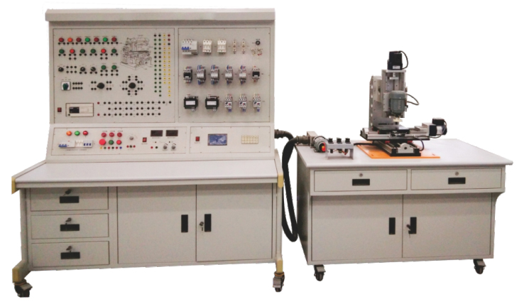LGY-DQ013D型X62W銑床電氣維修實(shí)訓(xùn)考核裝置是由多種電氣元器件組成各種電氣控制線路,并配有由教師機(jī)控制的智能考核系統(tǒng)方便教學(xué)使用。本設(shè)備采用仿真實(shí)物的方式,根據(jù)實(shí)物工作原理設(shè)計(jì)出機(jī)械機(jī)構(gòu)進(jìn)行高強(qiáng)度仿真學(xué)習(xí),在有效學(xué)習(xí)的基礎(chǔ)上增加了樂趣性。為了能開拓學(xué)生的思維,提高學(xué)生的創(chuàng)新意識(shí)本設(shè)備特別加入了PLC改造系統(tǒng),滿足了學(xué)員對(duì)本設(shè)備的創(chuàng)新性創(chuàng)造,本設(shè)備完全可以獨(dú)立使用,學(xué)生可以在該系列實(shí)訓(xùn)考核臺(tái)上進(jìn)行各種電氣故障的排除、訓(xùn)練和演示,以達(dá)到熟悉各種故障現(xiàn)象和熟練排除各種故障現(xiàn)象的動(dòng)手能力和訓(xùn)練目的。