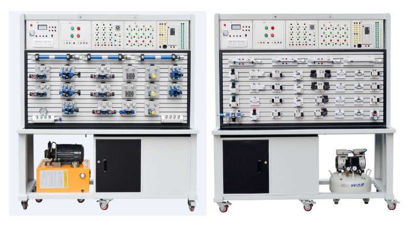 該實訓裝備覆蓋了氣壓傳動、液壓傳動、傳動繼電器控制、PLC自動控制、傳感器應用技術等多個技術領域 。是氣壓傳動技術、液壓傳動技術和各種現代控制技術的組合體。加上該實訓采用雙面工作臺結構設計,一個實訓裝備可供兩組學生同時進行各自不同的實訓,大大的提高了實訓設備的使用效率,并有效的利用了實訓室空間。