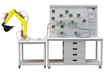 1、在原有透明液壓PLC控制實(shí)訓(xùn)裝置幾十種基本回路上增加了可模擬真實(shí)挖掘機(jī)工作裝置各種動(dòng)作。
