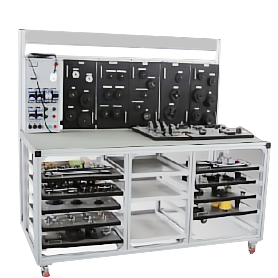本設備由通用工作臺及面板支架、由工業鋁型材組成的使用T型槽螺母進行安裝的安裝件以及各實訓模塊組成,各實訓模塊不用時可存放到通用工作臺中,使用時取出進行裝配調整,使用方便,配置靈活,能滿足不同階段學生教學實訓任務的需要。