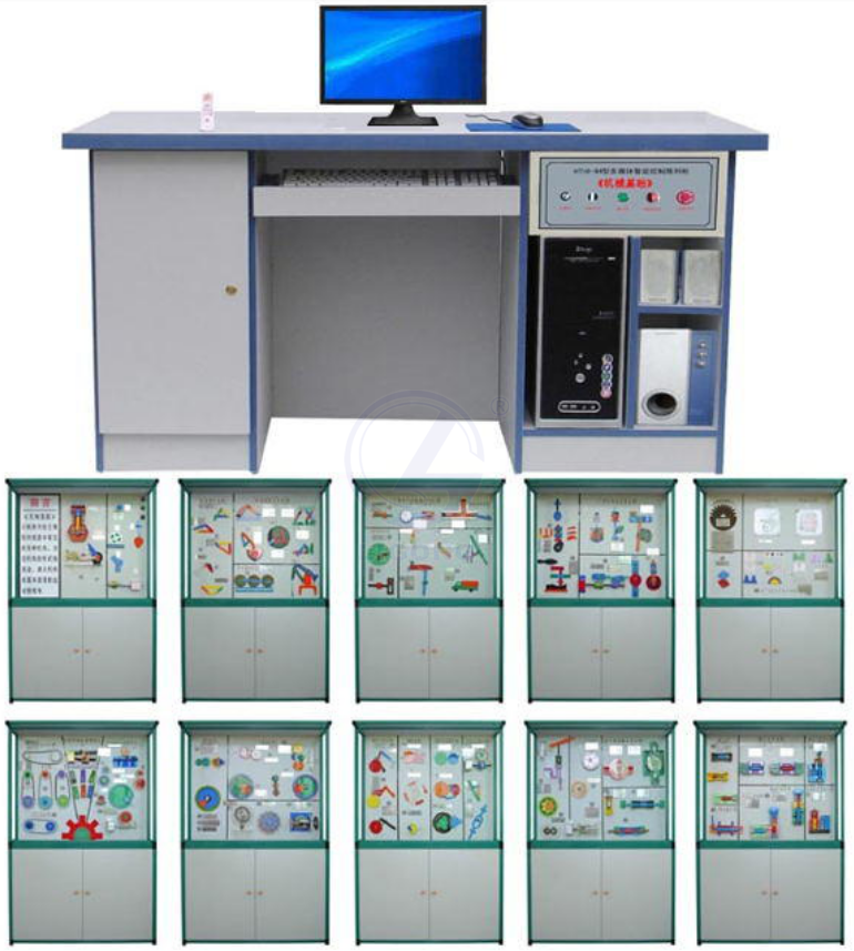 LG-N07型 多媒體智能控制《機(jī)械基礎(chǔ)》陳列柜根據(jù)大中專院校、職業(yè)學(xué)校的教學(xué)大綱設(shè)計(jì)的機(jī)械陳列柜,《機(jī)械基礎(chǔ)》電化教學(xué)設(shè)備。陳列柜共分十個(gè)柜和一個(gè)電腦控制臺,進(jìn)行多媒體聲控同步解說演示。柜內(nèi)91件模型均采用動(dòng)畫圖像由PC機(jī)電腦控制順序或任選運(yùn)行每個(gè)柜模型動(dòng)作。