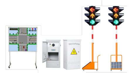 LGWM-J02型 智能交通信號路口控制系統包括2臺集中式協調交通信號控制機、8套機動車信號燈組、4套行人信號燈組和1套交通信號協調配時控制軟件,所有的設備均為實際工程用設備,并可做成可移動方式,可以方便的在實驗室室內和室外實驗。