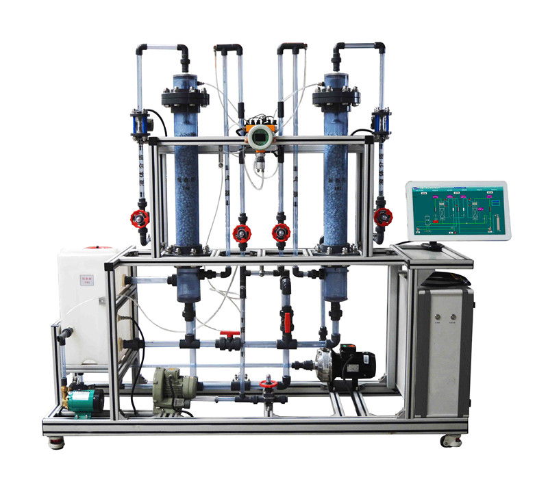 水:裝置自帶透明水箱,連接自來水。實驗時經離心泵進入吸收塔,循環使用。