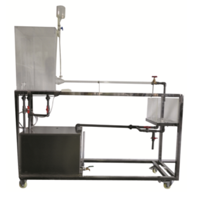 有機玻璃水槽、示蹤劑盒、示蹤劑流出管、細孔噴嘴、玻璃觀察管、計量水箱、刻度標尺、秒表、玻璃溫度計、不銹鋼框架。
