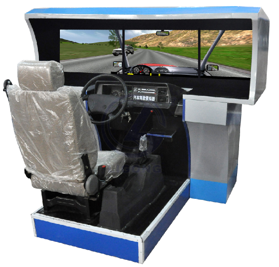三屏汽車駕駛模擬器(玻璃鋼外殼、3臺22寸液晶顯示器)座艙采用真車操作部件,為學員提供一個真車的操作環境。提供的訓練場景按中國道路的實際情況設計,可以分級設置,能訓練學員的基本駕駛操作技術和處理緊急情況的應變能力,能使學員快速掌握駕駛理論知識和基本操作技能。駕駛座艙可以獨立使用,也可以通過數據通信單元與電腦主控臺配合使用。座艙單獨使用時,可以實現汽車駕駛教學與訓練功能。和主控配合使用時,可以實現由教師監管任何一學員實時駕駛畫面,并能將每個學員檔案成績打印等功能。