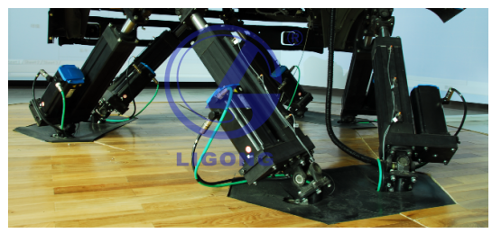 6自由度伺服電機(jī)控制電缸動感平臺,可實(shí)現(xiàn)前后、左右、上下三個方向的動態(tài)運(yùn)動。伺服電動缸行程:200mm,前后傾角30º,左右傾角30º,水平轉(zhuǎn)角30º。承重:1000KG;總重250KG。采用高速六自由度反解算法,快速響應(yīng)飛機(jī)的動態(tài),達(dá)到與畫面完全同步的動態(tài)效果。