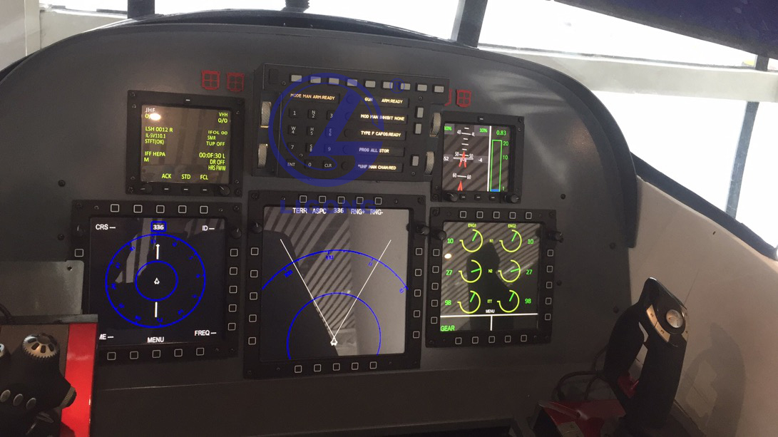 (4)儀表顯示高逼真模擬真機(jī)設(shè)計,包括獨(dú)立液晶儀表、綜合顯示儀表EFIS、飛機(jī)開關(guān)面板,導(dǎo)航儀表及開關(guān)等。