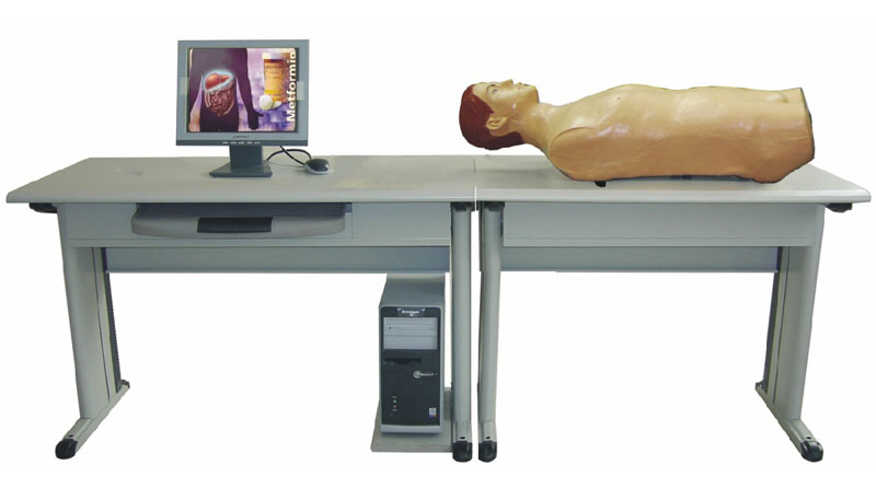 4.技能訓(xùn)練 效果逼真 醫(yī)學(xué)生通過(guò)屏幕能看到腹部疾病真實(shí)病人的各種體征,并可通過(guò)教師的示教加深理解,通過(guò)計(jì)算機(jī)編程智能化控制,將教學(xué)系統(tǒng)中100余種腹部觸診聽(tīng)診綜合體征,再現(xiàn)于仿真人體模型的相應(yīng)觸診聽(tīng)診部位,可模擬腹式呼吸每分鐘16次,肝、脾、膽及囊可隨呼吸在隔肌下上下移動(dòng)。肝臟腫大1~7厘米,脾臟腫大1~9厘米,較大的脾臟可觸到脾的切跡,可任意選擇設(shè)定。仿真病人可根據(jù)計(jì)算機(jī)指令自動(dòng)設(shè)置出相應(yīng)的體征和均勻的腹式呼吸??赡M腹部疾病時(shí)的各種壓痛點(diǎn)。觸診壓痛時(shí)模擬人會(huì)發(fā)出“哎呀!疼啊!”的痛苦叫聲。觸診膽囊點(diǎn)時(shí),墨菲氏征檢查陽(yáng)性時(shí)仿真標(biāo)準(zhǔn)化病人會(huì)發(fā)出痛苦的叫聲,并突然屏住呼吸,使效果更加逼真。還可模擬出正常腸鳴音、腸鳴音亢進(jìn)、腹部血管雜音等聽(tīng)診體征。