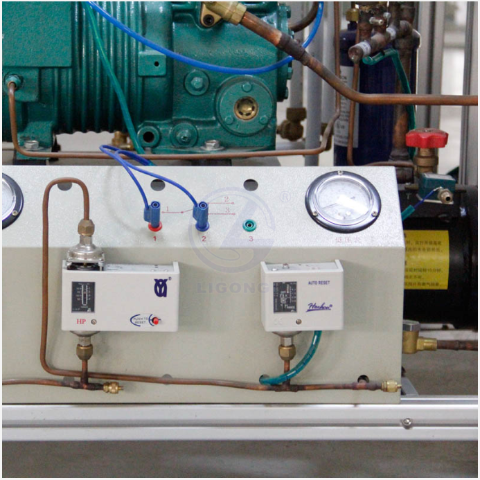LG-TZL02制冷與空調運行操作實訓設備根據《制冷與空調設備運行操作作業安全技術實際操作考試標準》研發。采用蒸汽壓縮式制冷循環系統,配備全封閉式制冷壓縮機、冷凝器、蒸發器等制冷系統真實部件,并設有智能溫度調節儀、流量計、壓力表、電壓表、電流表等測量儀表。考核以實際操作、仿真模擬操作完成。